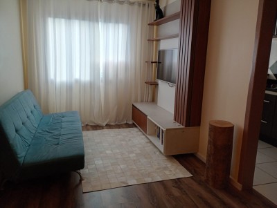 Descrição › Vendo - Apartamento Semi mobiliado com 02 dormitórios, sala de estar e jantar, cozinha, área de serviço, 01 banheiro, vaga de estacionamento rotativo.