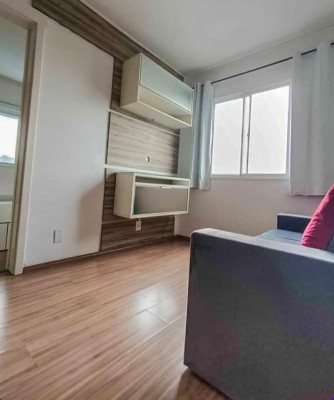 Apartamento semi mobiliado com 02 dormitórios, sala de estar e jantar, cozinha e aérea de serviço, 01 banheiro e uma vaga de estacionamento coberta.