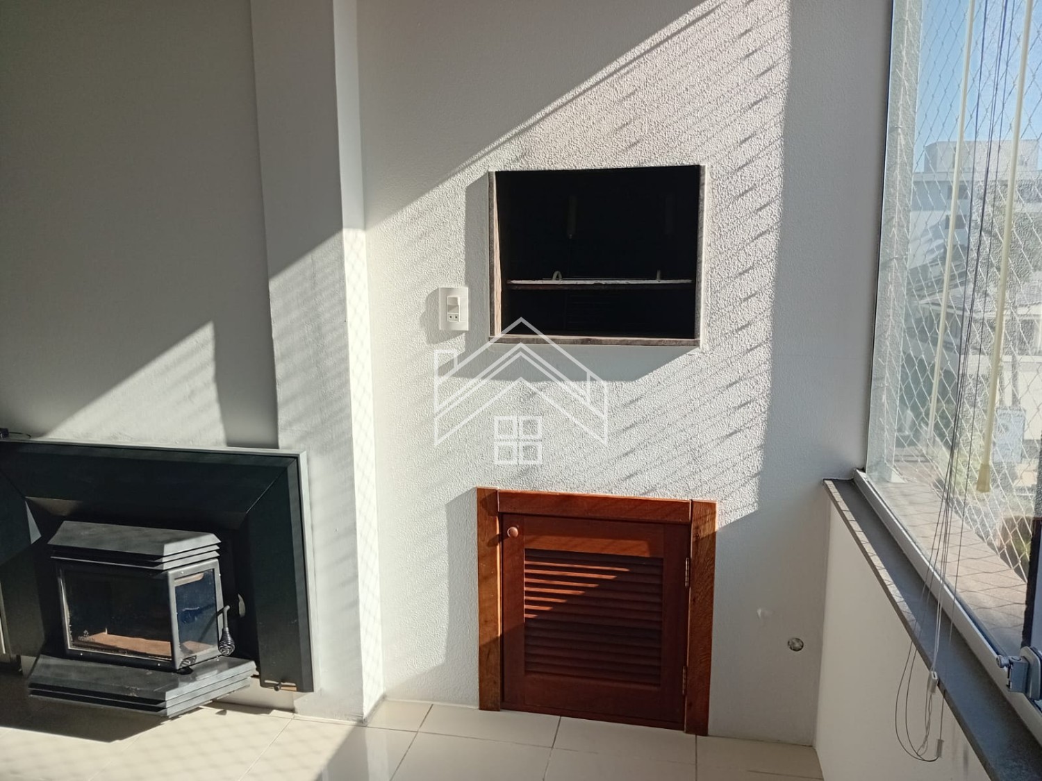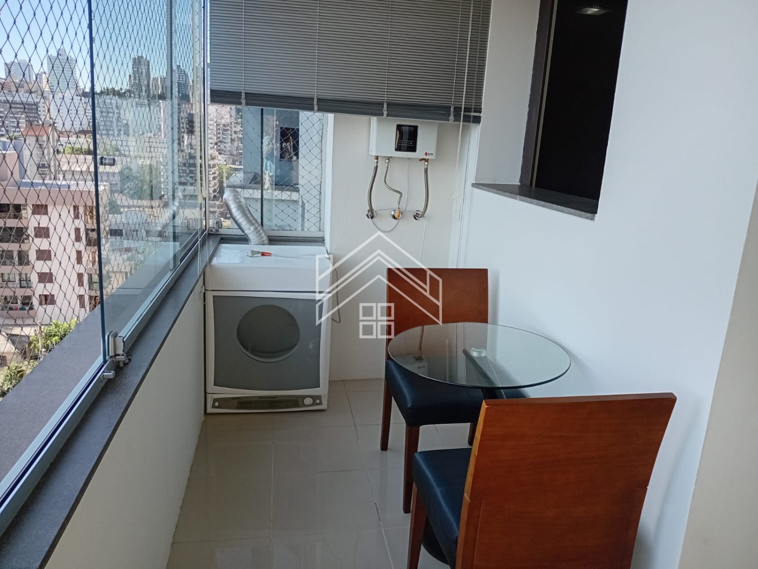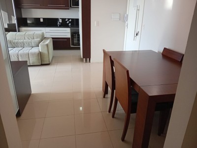 Descrição › Apartamento de 02 dormitórios sendo um suite com sacada fechada, sala de estar/jantar, lareira, sacada fechada com churrasqueira, cozinha, área de serviço e 02 boas vagas individuais de garagem. Apto Mobiliado.