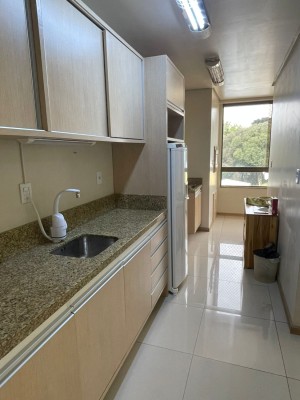 Descrição › Apartamento semi mobiliado com 02 dormitórios sendo um suite, sala estar e jantar com churrasqueira e sacada integrada, cozinha, área de serviço, 02 banheiros, uma vaga dupla de garagem.