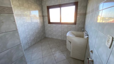 Parte inferior ampla sala com banheiros feminino e masculino, cozinha, churrasqueira. Pode ser usado como restaurante, lancheira, etc.