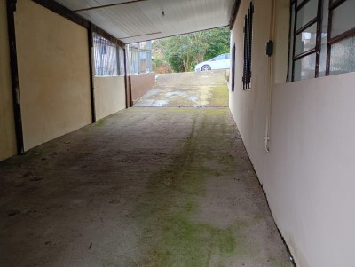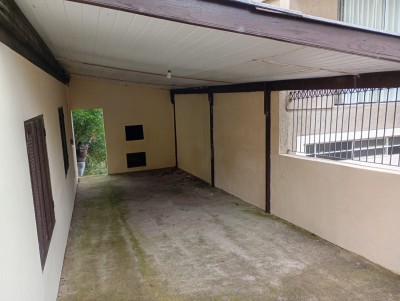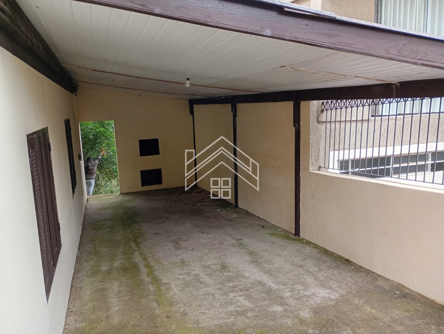 Garagem pra dois carros, e churrasqueira.
