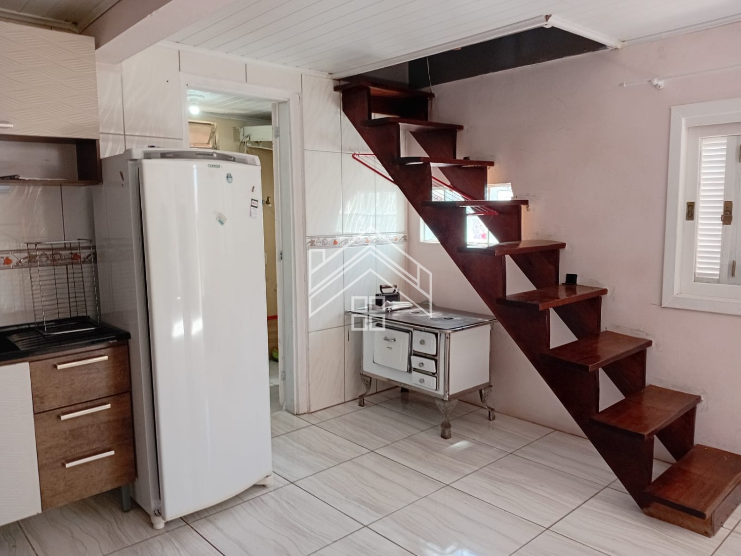 Descrição › Casa individual Mista de 02 pisos, na parte superior 03 dormitórios, 01 banheiro e uma sala.