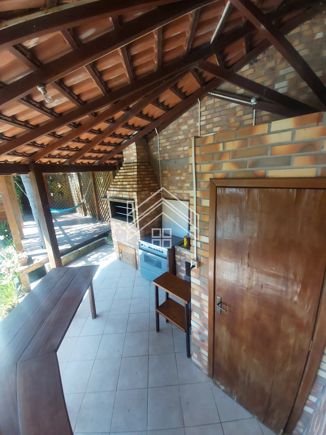 Quiosque com 01 banheiro, churrasqueira e deck,