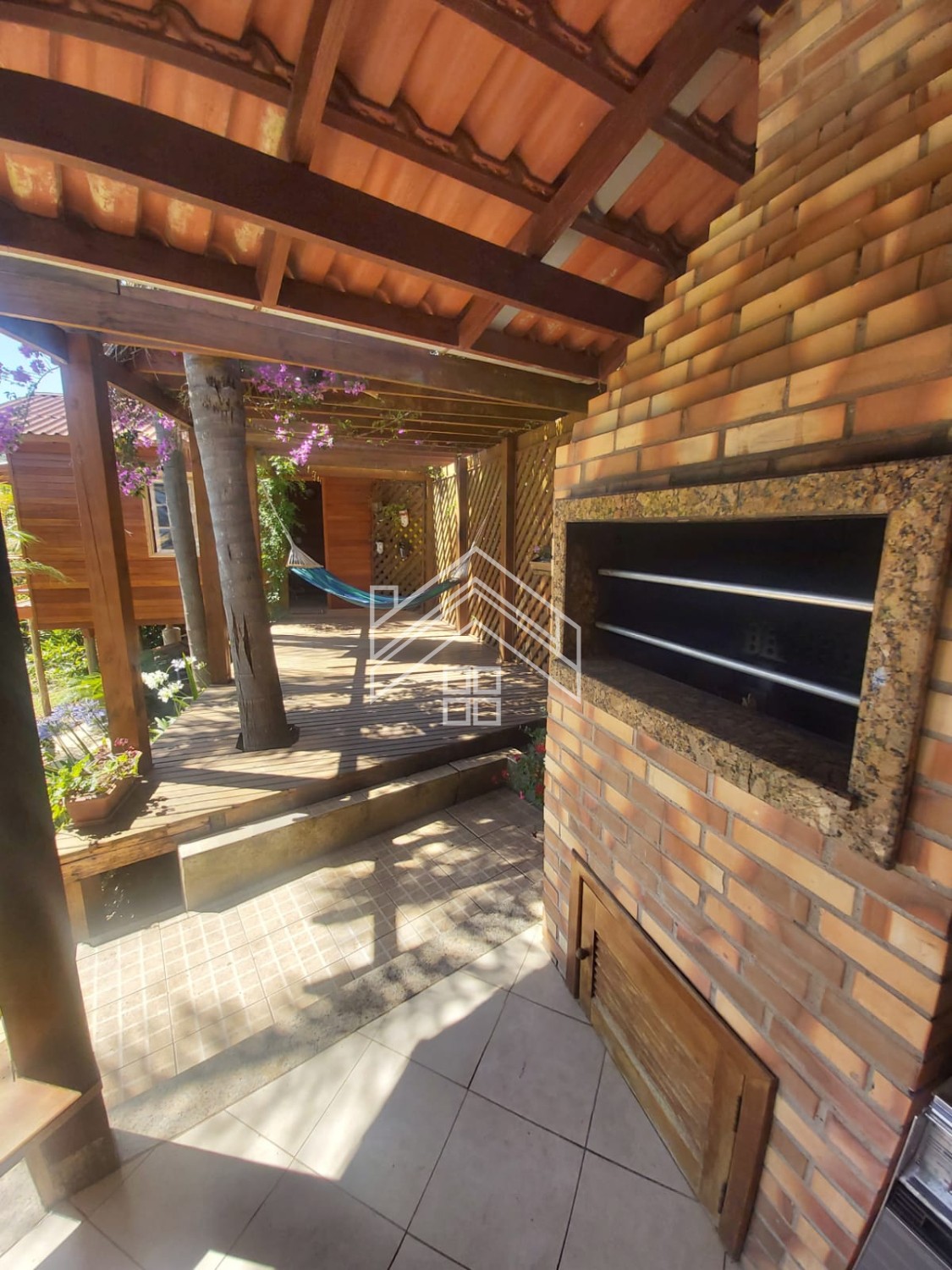 Patio com jardim, arvores frutíferas.