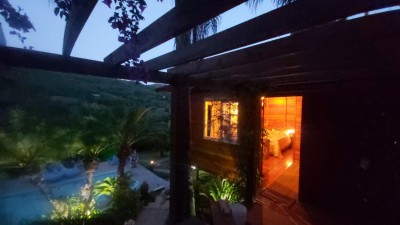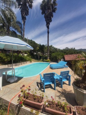 Descrição › Para o seu lazer ou moradia, Sitio com casa de 02 pisos. Sendo 83m² na parte superior 02 quartos sendo um suite, sala cozinha, 02 banheiros e varanda.
